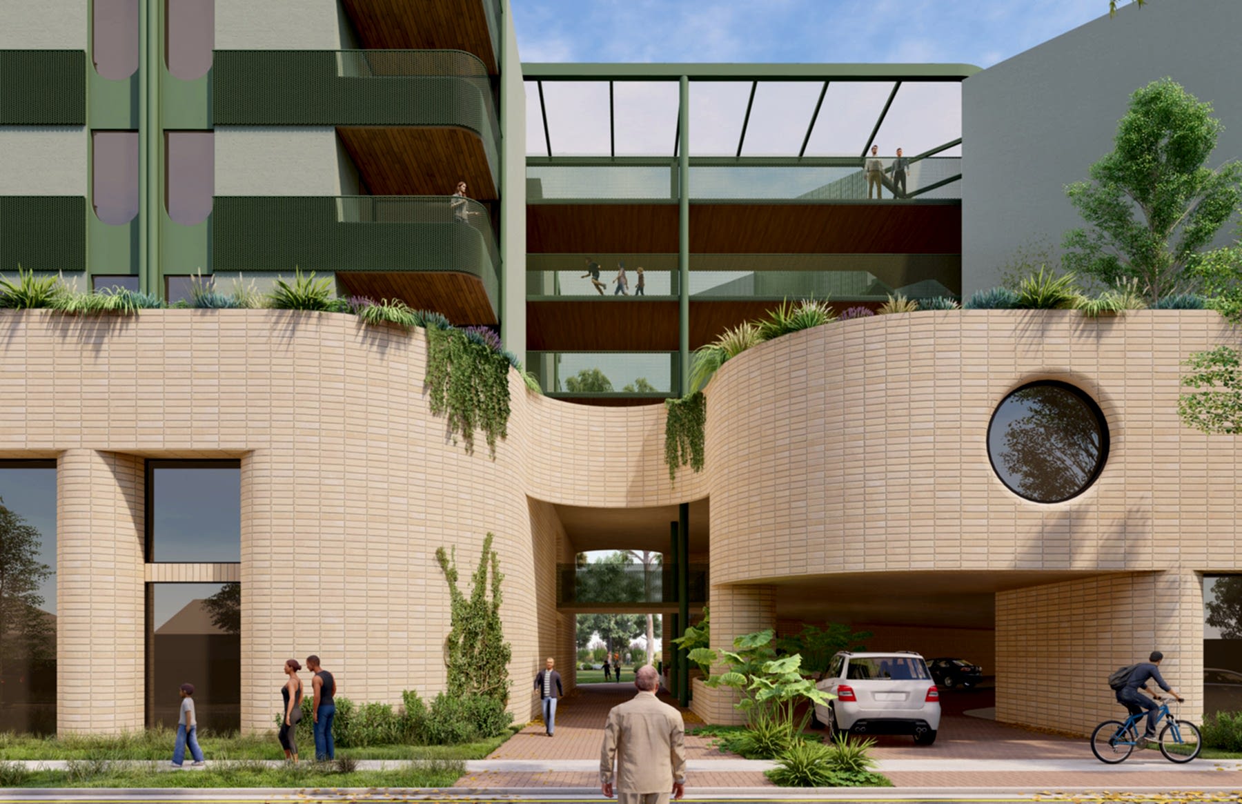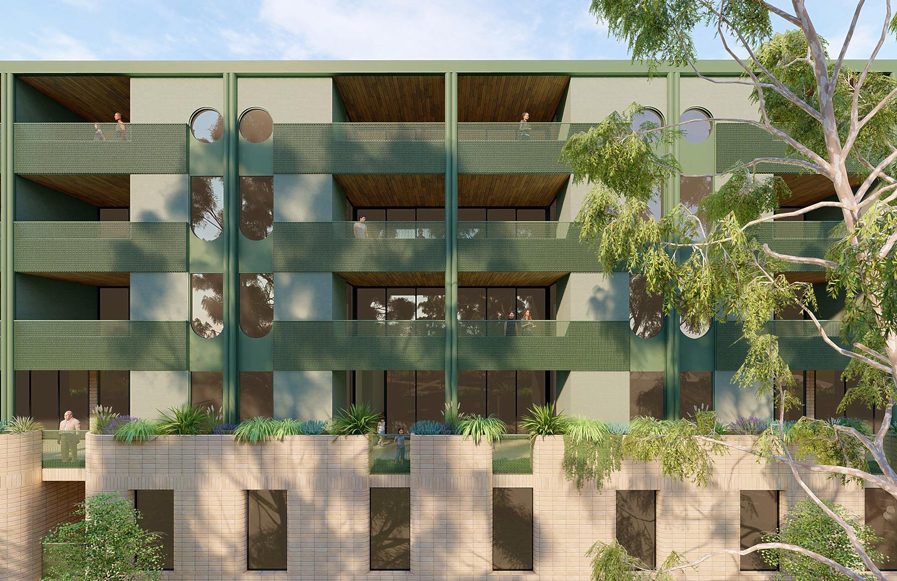 Cross-laminated timber (CLT) construction demonstrates a commitment to low embodied carbon, allowing efficient and modular floor planning. Passive design principles that considered building orientation, breezeways and utilisation of natural light, create low-energy consumption dwellings both in construction and operation, aspiring to WELL Gold certification.