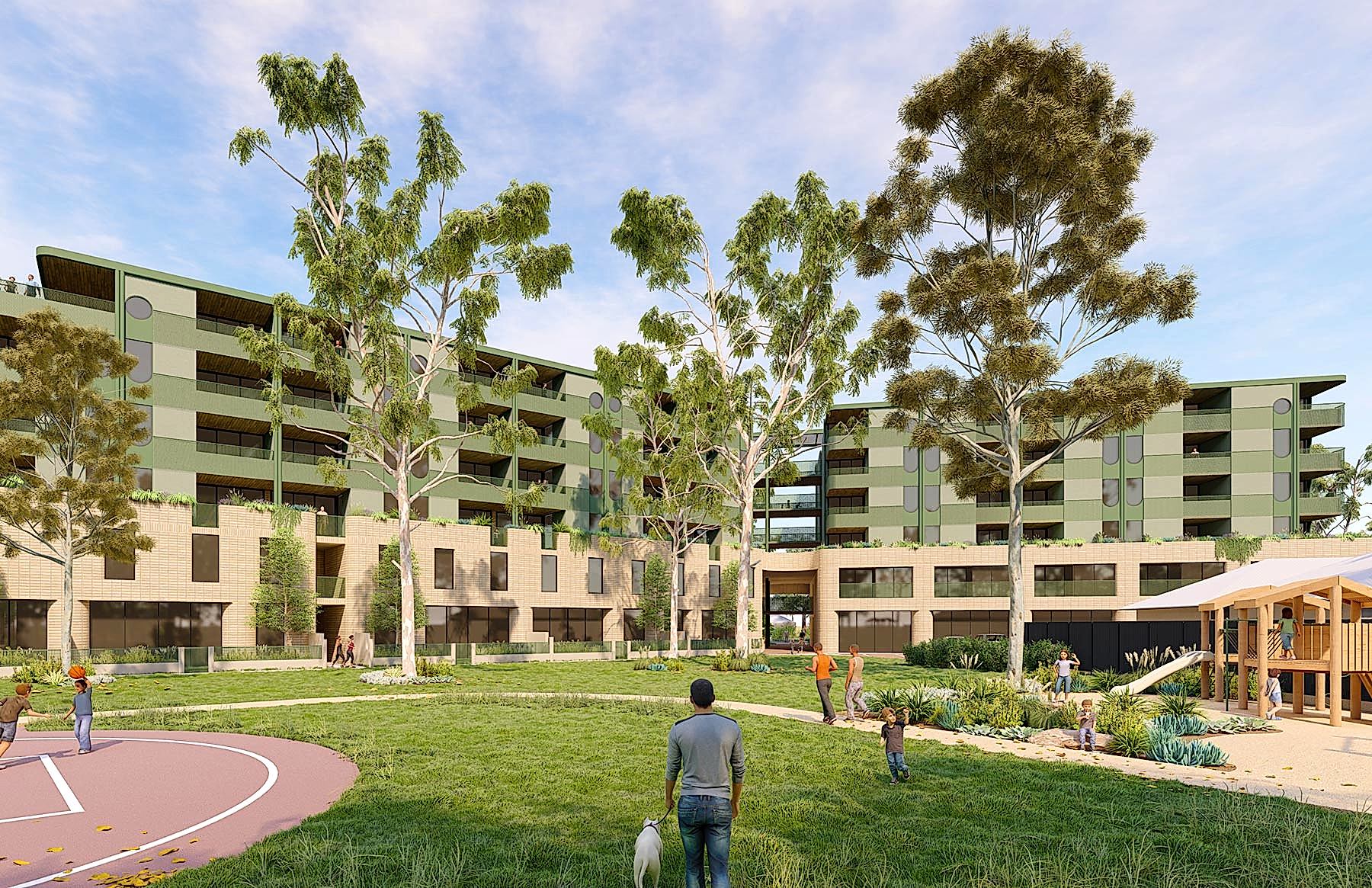 Working with Evans & Ayers, Das Studio investigated a significant asset portfolio of 40 sites to explore their suitability for mixed used and build-to-rent development. A gem of a suburban site was identified; a nexus of public transport corridors, and adjoining a vibrant neighbourhood park. This was leveraged to present a desirable and affordable residential development, providing additional value that is not easily replicated.