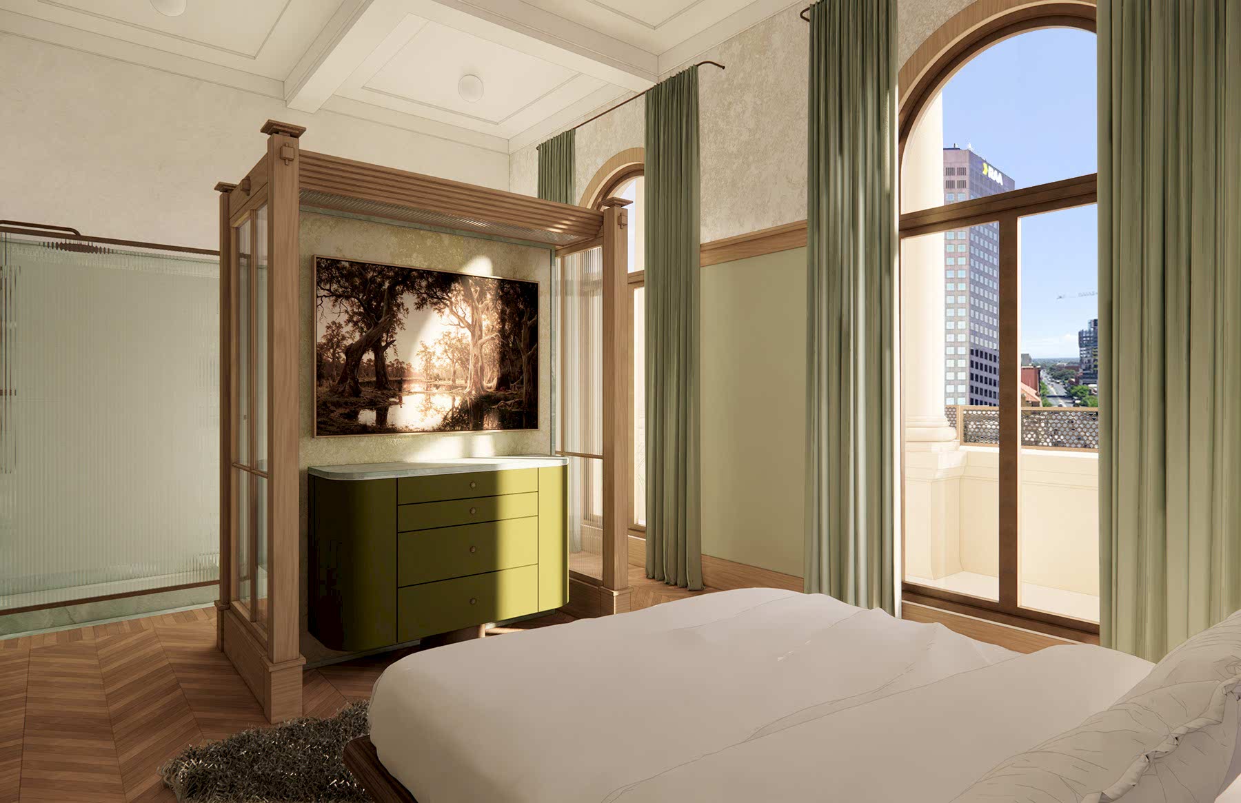 When the Temperance and General (T&G) office building was opened in 1925, it stood as a pillar of prosperity, the tallest piece of the Adelaide CBD skyline. 100 years later, its penthouse level is reimagined as a collection of luxurious and considered apartments, subtly echoing the building’s original arts and crafts interiors.